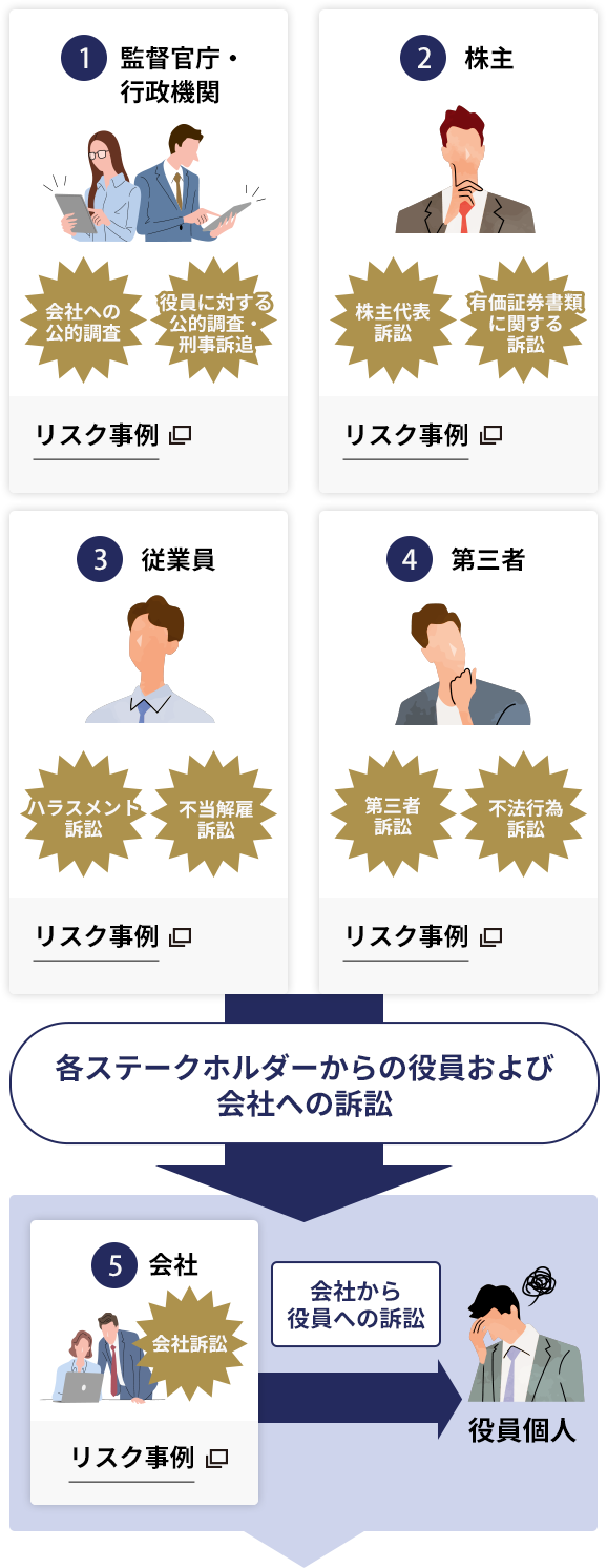 しかし経営リスクは多様化しており、取締役は様々な「法的責任」とリスクに囲まれてしまっています。